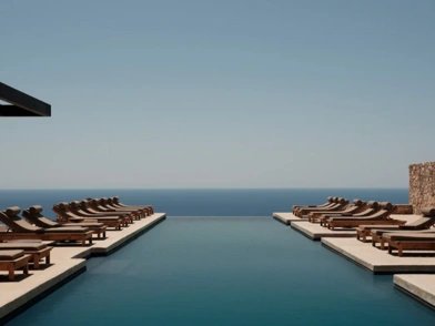 Ιδιωτικές πισίνες υπερχείλισης με θέα στο Αιγαίο Πέλαγος, ένα κοκτέιλ μπαρ στην άκρη του βράχου, ένα wine bar και ένα υπόγειο σπα, λαξευμένο στους βράχους, συμπληρώνουν την αξεπέραστη εμπειρία πολυτέλειας.