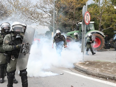 Η αστυνομία επιχείρησε να αποτρέψει την πρόσβαση των αγροτών προς τον δρόμο που οδηγεί στο αεροδρόμιο «Μακεδονία».