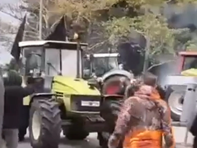 Σύμφωνα με βίντεο που κυκλοφόρησαν, ένα τρακτέρ κινήθηκε με όπισθεν προς τον φραγμό των αστυνομικών δυνάμεων, προκαλώντας ένταση και φωνές από συγκεντρωμένους.