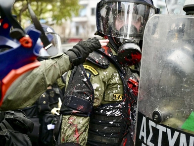 Η ένταση συνεχίστηκε και έξω από το Διοικητήριο, όπου κατέληξε η πορεία, όταν διαδηλωτές έριξαν βόμβες μολότοφ και οι αστυνομικοί τους «απώθησαν» με δακρυγόνα.