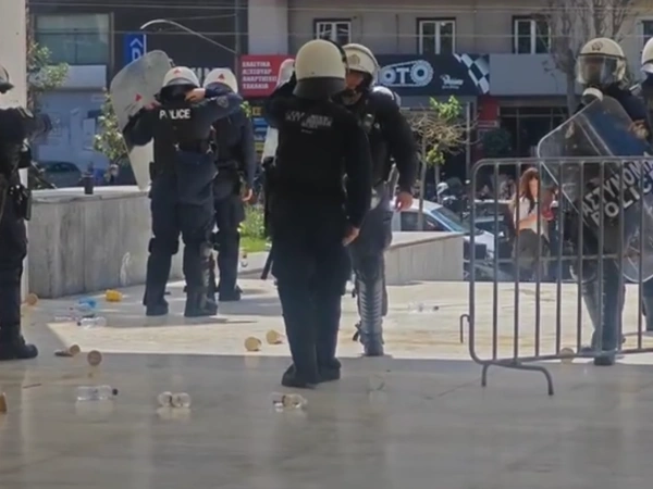 Άτομα έριξαν μπουκάλια και καφέδες στα ΜΑΤ, που βρίσκονταν στο σημείο.