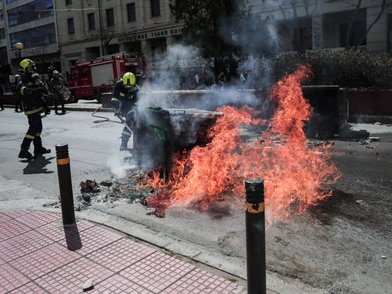 Συγκεκριμένα, άγνωστοι έβαλαν φωτιές σε κάδους, πέταξαν πέτρες, έσπασαν φανάρια, καθώς και τζαμαρία κτιρίου.