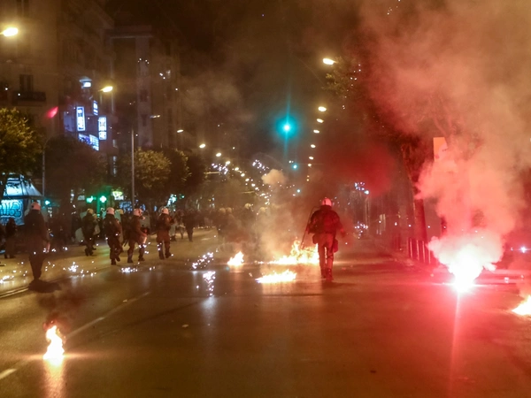 Ένταση έχει ξεσπάσει και στη Θεσσαλονίκη, πλην της Πάτρας, μετά τη μεγάλη πορεία για την 50η επέτειο του Πολυτεχνείου.