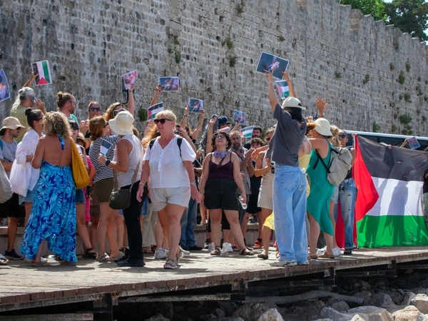 Σε σκηνικό έντασης μετατράπηκε το πρωί της Δευτέρας (28/07) το λιμάνι της Ρόδου, με αφορμή την άφιξη κρουαζιερόπλοιου που μετέφερε περισσότερους από 650 Ισραηλινούς τουρίστες στο νησί.