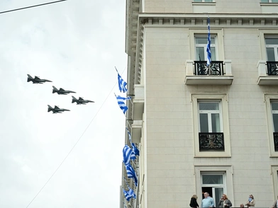 Με μαχητικά αεροσκάφη και ελικόπτερα της Πολεμικής Αεροπορίας γέμισε ο ουρανός της Αθήνας, καθώς διεξάγεται η μεγάλη στρατιωτική παρέλαση για την 25η Μαρτίου στο Σύνταγμα, με την παρουσία της Προέδρου της Δημοκρατίας, Κατερίνα Σακελλαροπούλου.