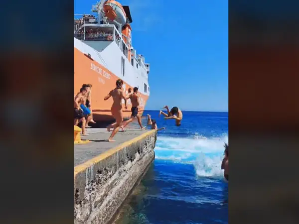 Όταν το πλοίο σαλπάρει, τα παιδιά βουτούν όλα μαζί στα αφρισμένα απόνερα σαν ένδειξη αποχαιρετισμού για τους ανθρώπους που φεύγουν.