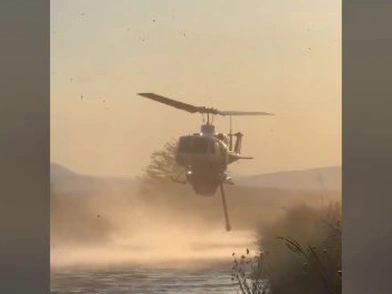 Στο Facebook ανέβηκε βίντεο με ελικόπτερο να γεμίζει νερό από κανάλι της περιοχής ώστε να συνδράμει στην κατάσβεση.