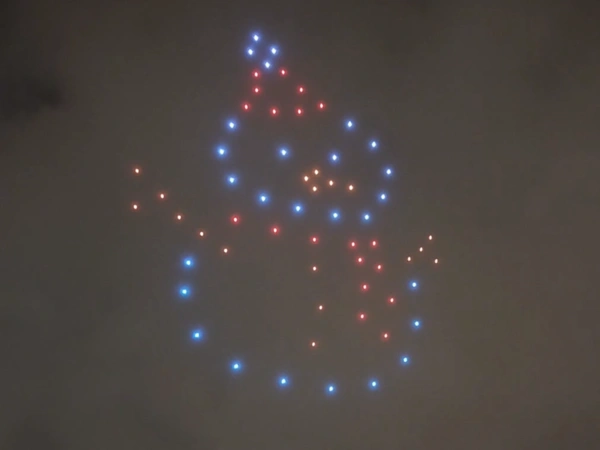 Τα drones σχημάτιζαν επί δέκα λεπτά χριστουγεννιάτικες παραστάσεις στον ουρανό, καθηλώνοντας μικρούς και μεγάλους. Ο Άγιος Βασίλης με τους ταράνδους και το έλκηθρό του, χιονάνθρωποι, έλατα και χριστουγεννιάτικες μπάλες πέταξαν για λίγο στον Αττικό ουρανό.