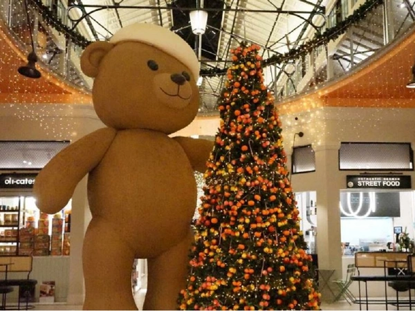 Ωστόσο, τα βλέμματα καταφέρνει να κλέψει ένας τεράστιος αρκούδος που δεσπόζει δίπλα στο χριστουγεννιάτικο δέντρο.