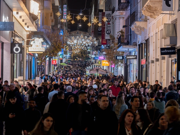 Στον πιο εμπορικό δρόμο της πρωτεύουσας, την οδό Ερμού, από νωρίς το πρωί, καταναλωτές κατακλύζουν τα μαγαζιά συνδυάζοντας τη βόλτα με τα ψώνια της τελευταίας στιγμής για το ρεβεγιόν της Πρωτοχρονιάς.