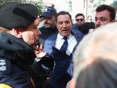 Η ομάδα ασφαλείας του υπουργού επιχείρησε να τον απομακρύνει από την ένταση, την ώρα που η αστυνομία είχε έρθει στα χέρια με τους διαδηλωτές, μεταξύ αυτών και γιατροί του νοσοκομείου.