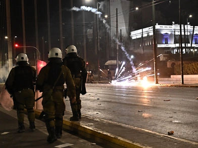 Επεισόδια σημειώνονται στο Σύνταγμα μετά την πορεία για τα Τέμπη, όταν κουκουλοφόροι εκτόξευσαν βόμβες μολότοφ και άλλα αντικείμενα κατά των αστυνομικών δυνάμεων.
