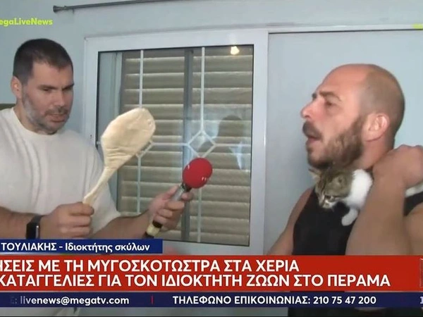 «Έχω φτιάξει αυτή την αυτοσχέδια μυγοσκοτώστρα που δεν πονάει, μόνο και μόνο για να τα πανικοβάλλω», είπε χαρακτηριστικά στο Mega και μάλιστα έκανε επίδειξη μπροστά στην κάμερα, για να πείσει ότι είναι ελαφρύ το χτύπημα με το εν λόγω αντικείμενο.