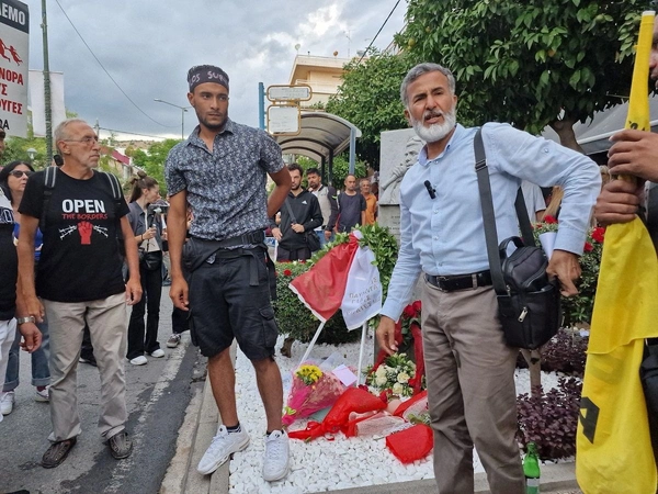 Επιζώντες από το ναυάγιο της Πύλου κατέθεσαν λουλούδια στο μνημείο του Παύλου Φύσσα στο Κερατσίνι, όπου βρίσκεται σε εξέλιξη η μεγάλη αντιφασιστική πορεία.