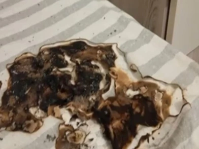 Στις φωτογραφίες που παρουσίασε ο σταθμός, φαίνεται το καμμένο στρώμα και το έγκαυμα που υπέστη ο νεαρός.