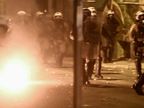 Οι άγνωστοι εμφανίστηκαν ξαφνικά από τα στενά της περιοχής εκτόξευσαν βόμβες μολότοφ και πέτρες κατά αστυνομικών και στη συνέχεια έσπευσαν να εξαφανιστούν, πυρπολώντας κάδους απορριμμάτων. Οι άνδρες των ΜΑΤ έκαναν περιορισμένη χρήση χημικών και εκτόξευσαν χειροβομβίδες κρότου λάμψης προκειμένου να «αποκρούσουν» την επίθεση.