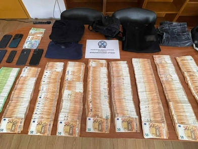 Στην κατοχή των συλληφθέντων βρέθηκε, μεταξύ άλλων, το ποσό των 87.140 ευρώ, επτά κινητά, ανιχνευτή μετάλλων, ηλεκτρονική ζυγαριά και είδη ρουχισμού που χρησιμοποιήθηκαν στη διάρρηξη του σπιτιού.