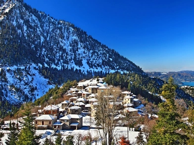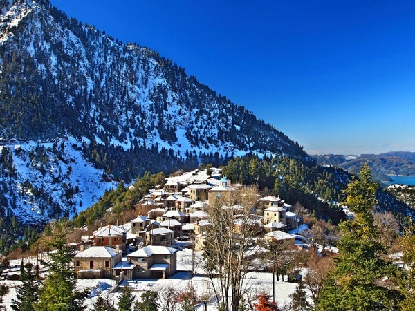 Απλώνει τα πέτρινα σπίτια του στις πλαγιές του όρους Χελιδόνα και ξεχωρίζει για την υπέροχη θέα που προσφέρει στη Λίμνη Κρεμαστών από υψόμετρο 960 μέτρων.