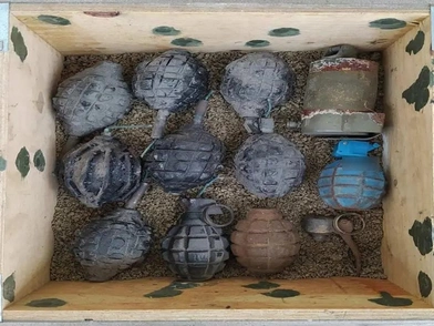 Αρχικά κατά την έρευνα βρέθηκαν και κατασχέθηκαν 29 όπλα, εκ των οποίων 14 πολεμικά τυφέκια, 3 υποπολυβόλα, 5 πιστόλια, 6 περίστροφα και 1 καραμπίνα, 95 γεμιστήρες, εκ των οποίων 57 πολεμικών τυφεκίων, 31 υποπολυβόλων και 7 πιστολιών, ποσότητα πυρίτιδας βάρους 72 κιλών και 200 γραμμαρίων, 11 χειροβομβίδες, εκ των οποίων 10 αμυντικού τύπου και 1 εκπαιδευτική, 5 βλήματα όλμου, 35.455 φυσίγγια διαφόρων διαμετρημάτων, απροσδιόριστος αριθμός καλύκων, συνολικού βάρους 414 κιλών καθώς επίσης αυτοσχέδιος εκρηκτικός μηχανισμός, αστυνομική ράβδος, βαλλίστρα, διόπτρα, αλεξίσφαιρο, κροτίδες, βολίδες, πυροκροτητές, τμήματα διαφόρων πολεμικών τυφεκίων και φωτοπαγίδα.