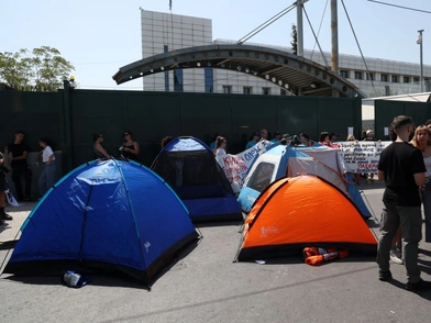 Αντίσκηνα έξω από το υπουργείο Παιδείας έστησαν φοιτητικοί σύλλογοι σε ένδειξη διαμαρτυρίας για το τεράστιο πρόβλημα της φοιτητικής στέγης, αλλά και για τις δρομολογούμενες διαγραφές φοιτητών.