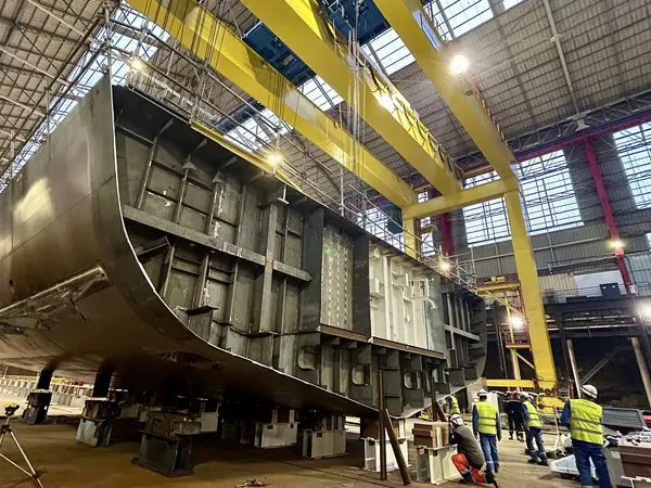 Η τοποθέτηση τρόπιδας του πρώτου μπλοκ της τρίτης ελληνικής φρεγάτας FDI HN πραγματοποιήθηκε στις 15 Απριλίου στο ναυπηγείο της Naval Group στην πόλη Λοριάν της Γαλλίας.