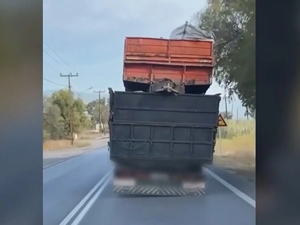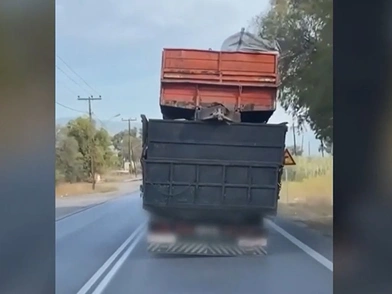 Τρόμο προκάλεσε ένας οδηγός φορτηγού στην Εύβοια, ο οποίος, όπως ανέδειξε βίντεο της εκπομπής «Live You» του ΣΚΑΪ, είχε φορτώσει στην καρότσα του άλλο φορτηγό και κυκλοφορούσε στους δρόμους.