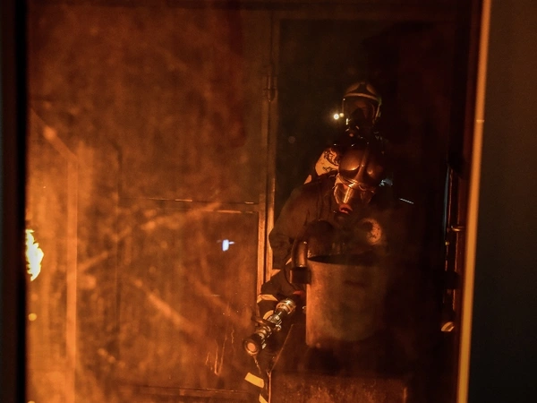 Οι Πυροσβέστες συνόδευσαν στην έξοδο του σπιτιού τη μητέρα με τα δύο της παιδιά που βρίσκονταν στο μπαλκόνι.