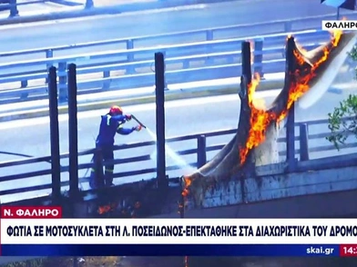 Φωτιά ξέσπασε το μεσημέρι της Τρίτης (30/07) σε δίκυκλο που κινούνταν στην έξοδο του Κηφισού προς Πειραιά.