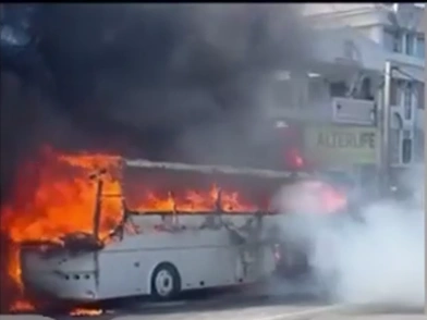 Αυτόπτες μάρτυρες που επικαλείται η εκπομπή «Live News» του Mega, αναφέρουν ότι στο λεωφορείο υπήρχαν επιβάτες, οι οποίοι ευτυχώς απομακρύνθηκαν εγκαίρως. Επιπλέον, ο οδηγός βγήκε εκτός οχήματος.