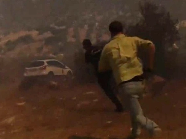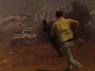 Μέσα σε λίγα δευτερόλεπτα οι ισχυροί άνεμοι έφεραν τις φλόγες μια ανάσα από τον δημοσιογράφο και τον οπερατέρ του καναλιού, οι οποίοι αναγκάστηκαν να απομακρυνθούν από το σημείο και να μετακινηθούν σε πιο ασφαλές σημείο.