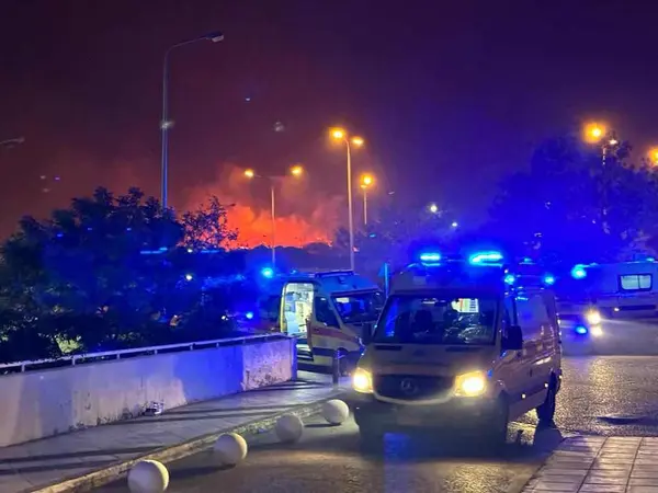 Την ίδια ώρα οι Πυροσβεστικές δυνάμεις έδιναν μάχη με τις φλόγες που κατά τη διάρκεια της νύχτας έφτασαν στα 300 μέτρα από το νοσοκομείο χωρίς να προκαλέσουν ζημιές αλλά δημιουργώντας διάσπαρτες εστίες και πολύ καπνό.