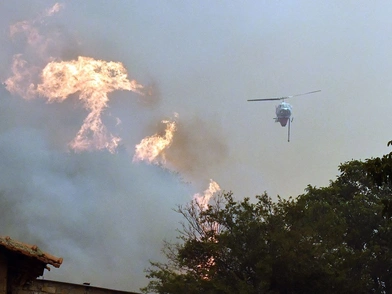 Σύμφωνα με την Πυροσβεστική η φωτιά είναι σε χαράδρα και την «χτυπούν» κυρίως με τα εναέρια μέσα με στόχο να την περιορίσουν όσο αυτά επιχειρούν.
