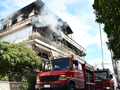 Από τη φωτιά, δύο όροφοι της πολυκατοικίας κάηκαν ολοσχερώς.