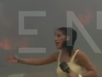 «Πρέπει να απομακρυνθούμε, Μίνα! Μας κάνουν νόημα να απομακρυνθούμε. Η φωτιά βρίσκεται σε απόσταση αναπνοής από τα σπίτια. Πάμε λίγο πιο γρήγορα, Πάνο! Παντού υπάρχουν φλόγες. Πάμε, πάμε, πάμε!», ακούγεται να λέει η δημοσιογράφος την ώρα που τρέχει να σωθεί από τη φωτιά.