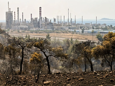 Την ίδια στιγμή, φωτογραφίες του πρακτορείου Eurokinissi αποκαλύπτουν πως οι φλόγες έφτασαν σε ιδιαίτερα κοντινή απόσταση από τα διυλιστήρια της Motor Oil: