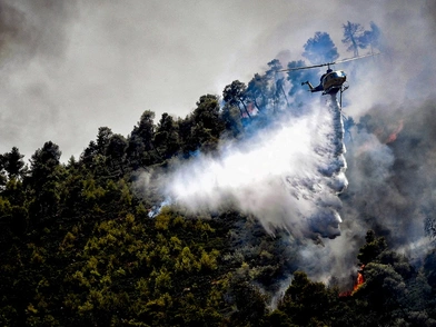 Η κινητοποίηση της Πυροσβεστικής είναι μεγάλη, με επίγειες και εναέριες δυνάμεις.