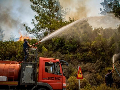 Μάλιστα, ήχησε το 112 για εκκένωση της περιοχής γύρω από την παραλία Μελιδόνι.