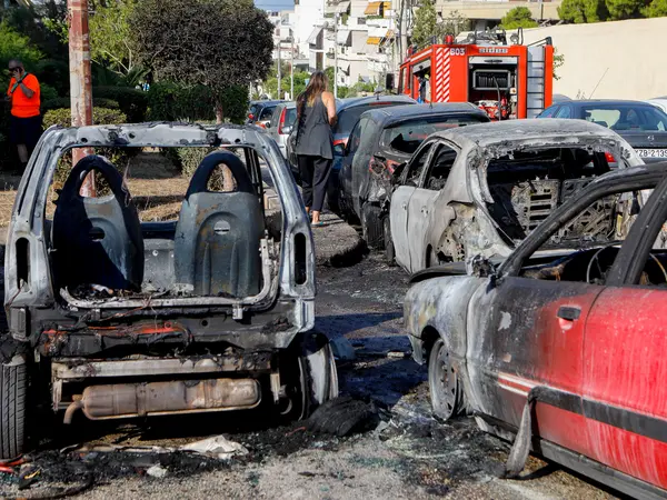 Φωτιά ξέσπασε στη Νέα Σμύρνη, καθώς στις φλόγες έχουν τυλιχτεί οχήματα.
