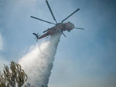 Για την κατάσβεση της φωτιάς επιχειρούν εθελοντές πυροσβέστες με δύο οχήματα ενώ συνδρομή παρέχουν από αέρος δύο αεροσκάφη και ένα ελικόπτερο.