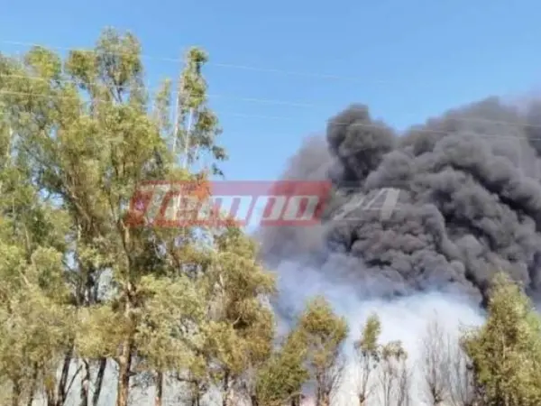 Φωτιά ξέσπασε σε περιβάλλοντα χώρο εργοστασίου στο Γομοστό Δυτικής Αχαΐας.