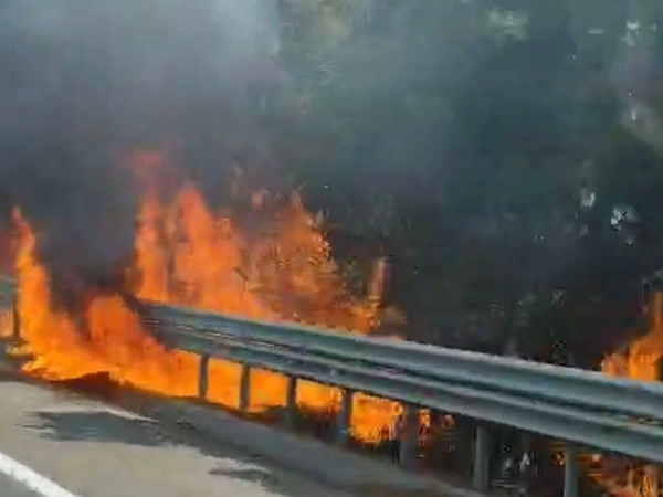 Η φωτιά φέρεται να έχει ξεσπάσει σύμφωνα μες τις πρώτες πληροφορίες στο πρανές του οδοστρώματος.