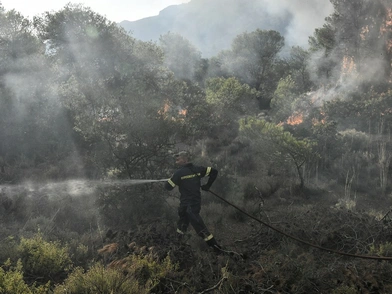 Σύμφωνα με ενημέρωση της Πυροσβεστικής, η φωτιά καίει δασική και χορτολιβαδική έκταση.