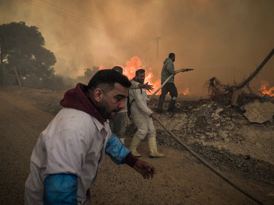 Πολλοί από τους πυροσβέστες επιχειρούν με αυτοθυσία, περνώντας μέσα από το φλεγόμενο μέτωπο, προκειμένου να δημιουργήσουν αντιπυρικές ζώνες και να προστατεύσουν μικρές μονάδες και εγκαταστάσεις που βρίσκονται διάσπαρτες.