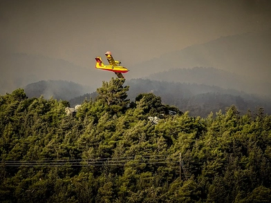 Το μέτωπο της φωτιάς βρίσκεται μέσα σε μία χαράδρα και δεν απειλεί μέχρι τώρα κάποια κατοικημένη περιοχή.