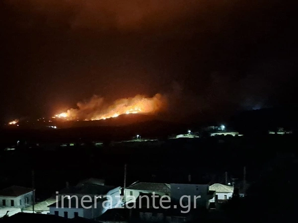 Φωτιά εκδηλώθηκε το βράδυ του Σαββάτου στο χωριό Εξωχώρα, στη βόρεια πλευρά της Ζακύνθου.