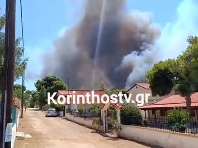 Η πυρκαγιά βρίσκεται κοντά σε κατοικημένη περιοχή όπως φαίνεται και στα βίντεο του korinthostv.gr.