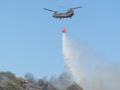 Από αέρος επιχειρούν τρία ελικόπτερα της πυροσβεστικής.