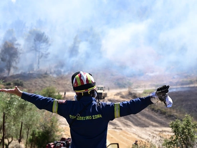 Η φωτιά ξέσπασε ανάμεσα σε δύο χωριά, το Λεοντάρι και τα Βάγια, έξω από την Θήβα και υπήρξε μεγάλη κινητοποίηση από την Πυροσβεστική.