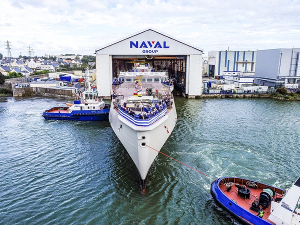 Καθελκύστηκε η φρεγάτα Belharra «Νέαρχος» στα ναυπηγεία του Naval Group, στο Λοριάν της Γαλλίας, για λογαριασμό του Πολεμικού Ναυτικού της Ελλάδας, με τον υπουργό Εθνικής Άμυνας, Νίκο Δένδια, να δίνει το παρόν.