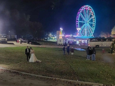 Όπως μοιράστηκε το trikalavoice, ένα ζευγάρι αποφάσισε να κάνει τη φωτογράφηση του γάμου τους με φόντο τις πολύχρωμες εγκαταστάσεις του «Μύλου», μπροστά στα φώτα και τα γιορτινά λαμπιόνια.